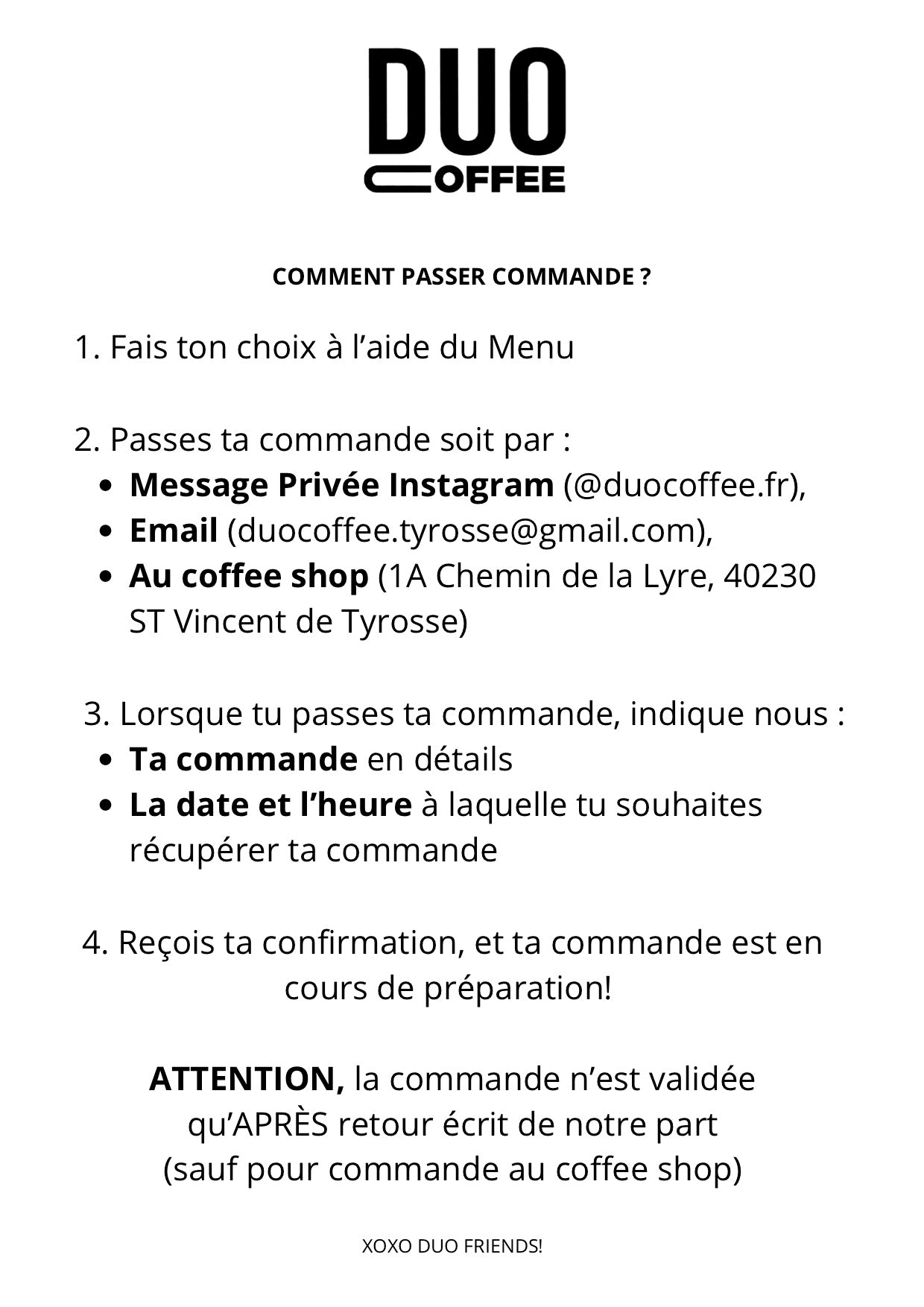 Votre commande sera disponible en retrait à notre coffee shop à Saint Vincent de Tyrosse.