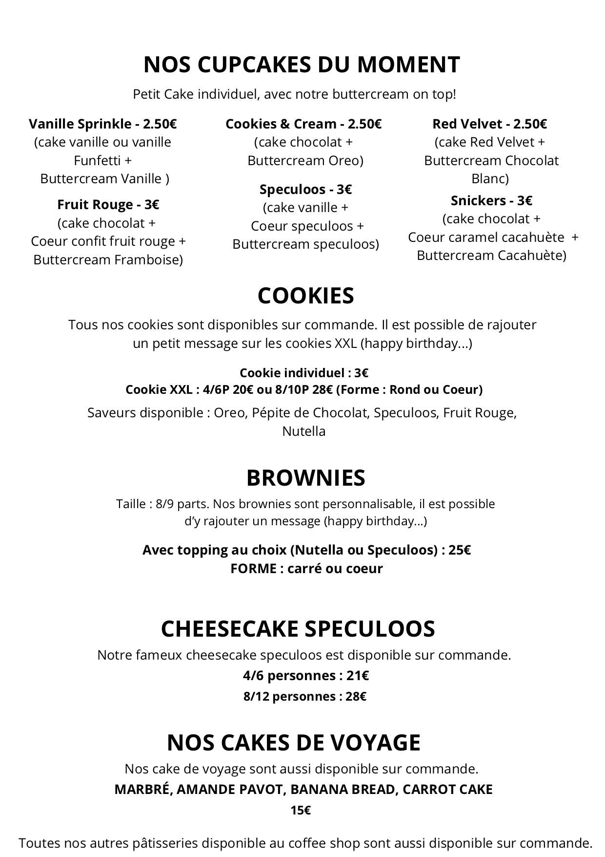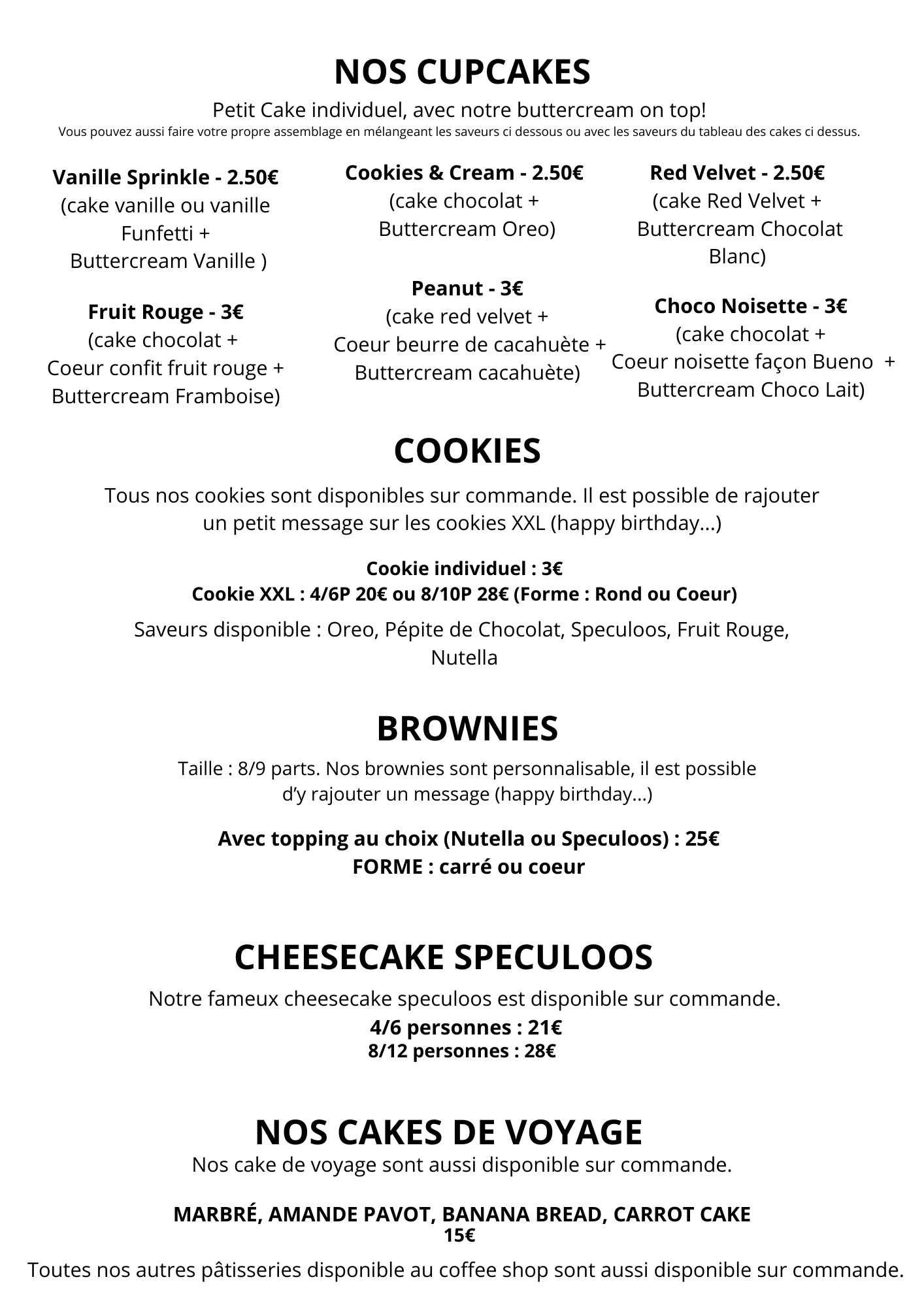 Tu trouveras toutes nos options sur le menu ci-dessous ! Pour passer ta commande, c'est simple : tu peux soit nous l'envoyer par email, par Instagram, ou bien directement au shop, en personne!